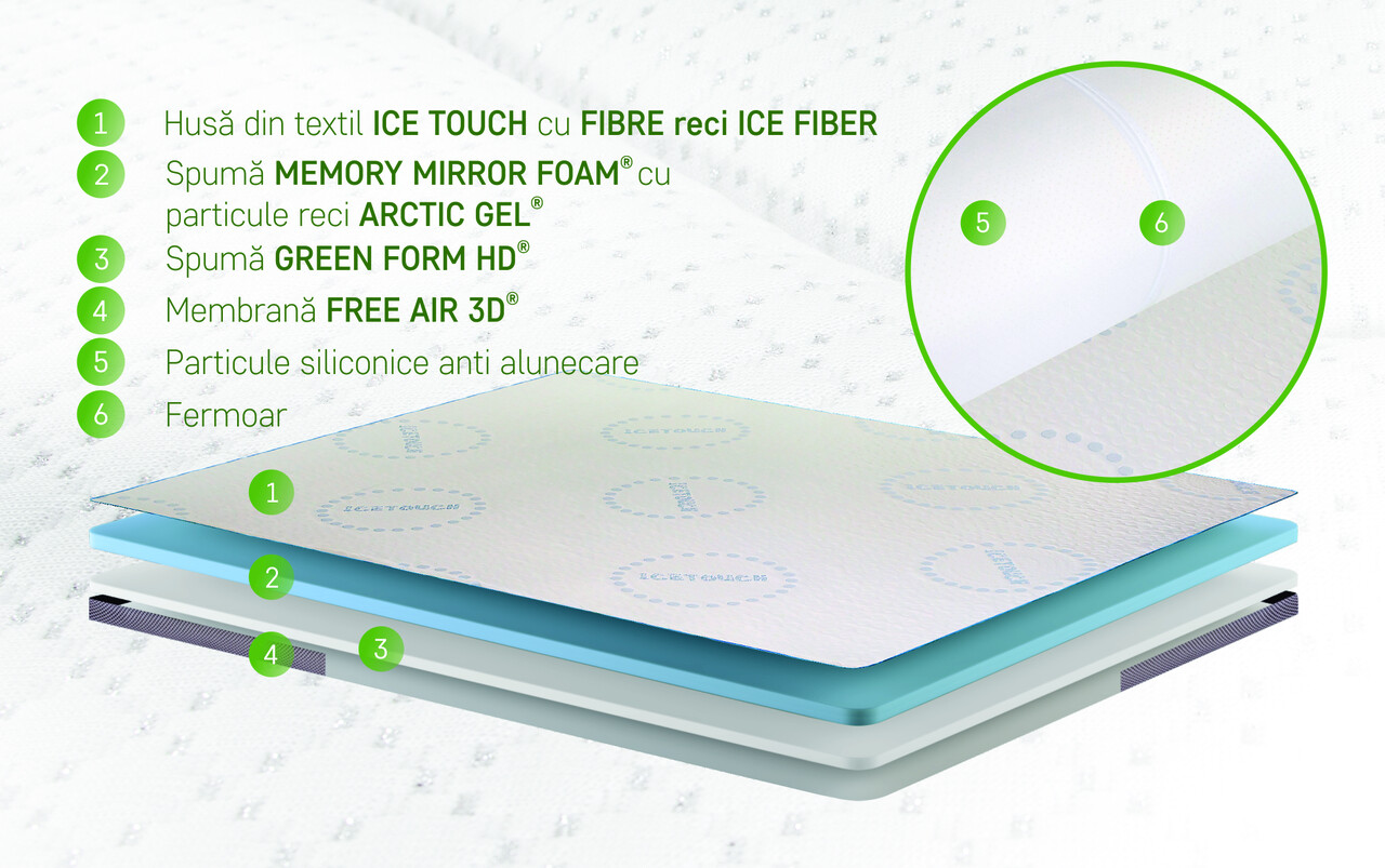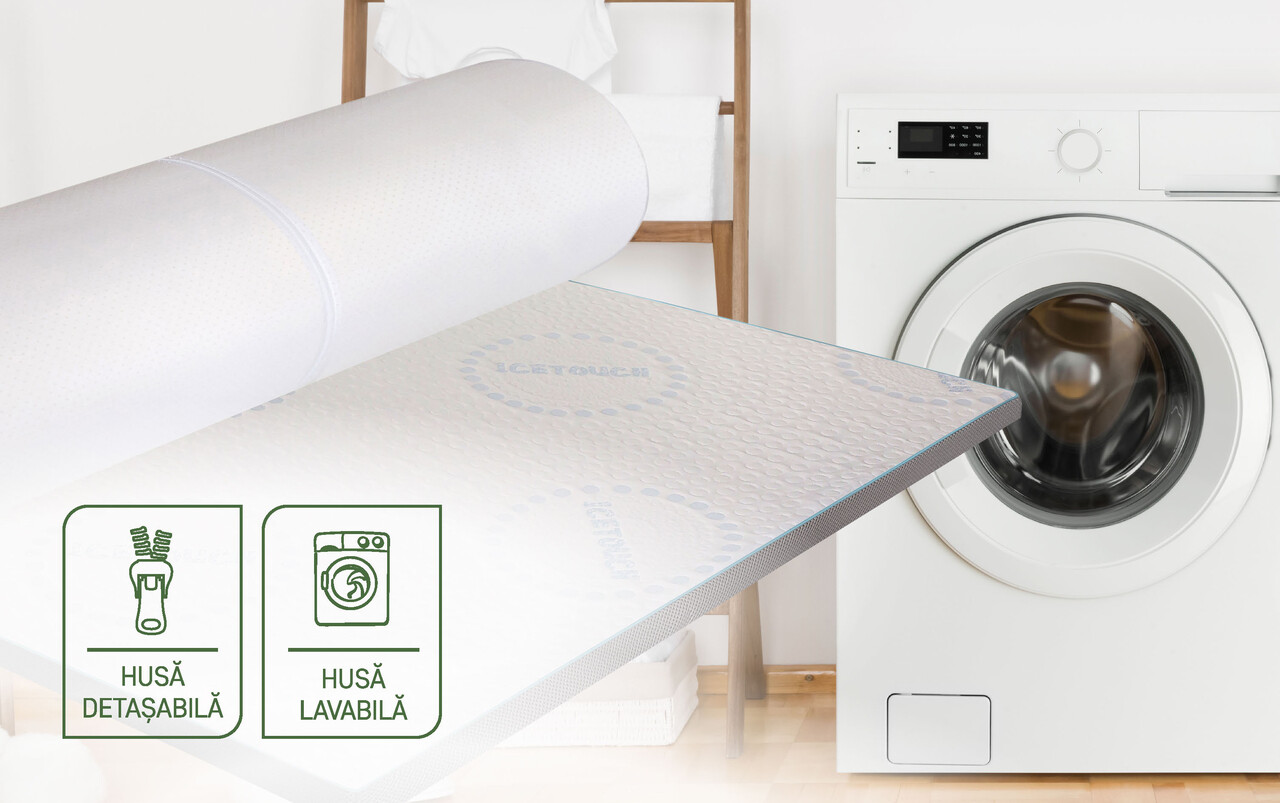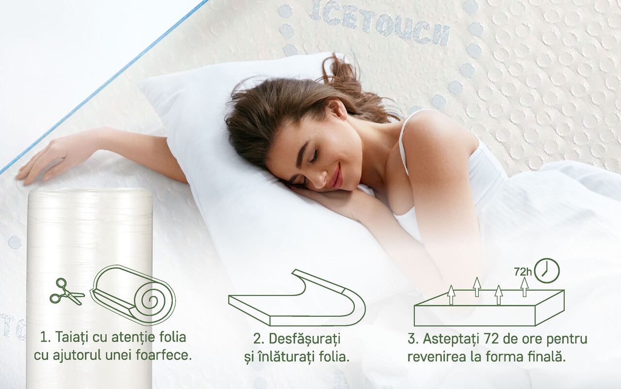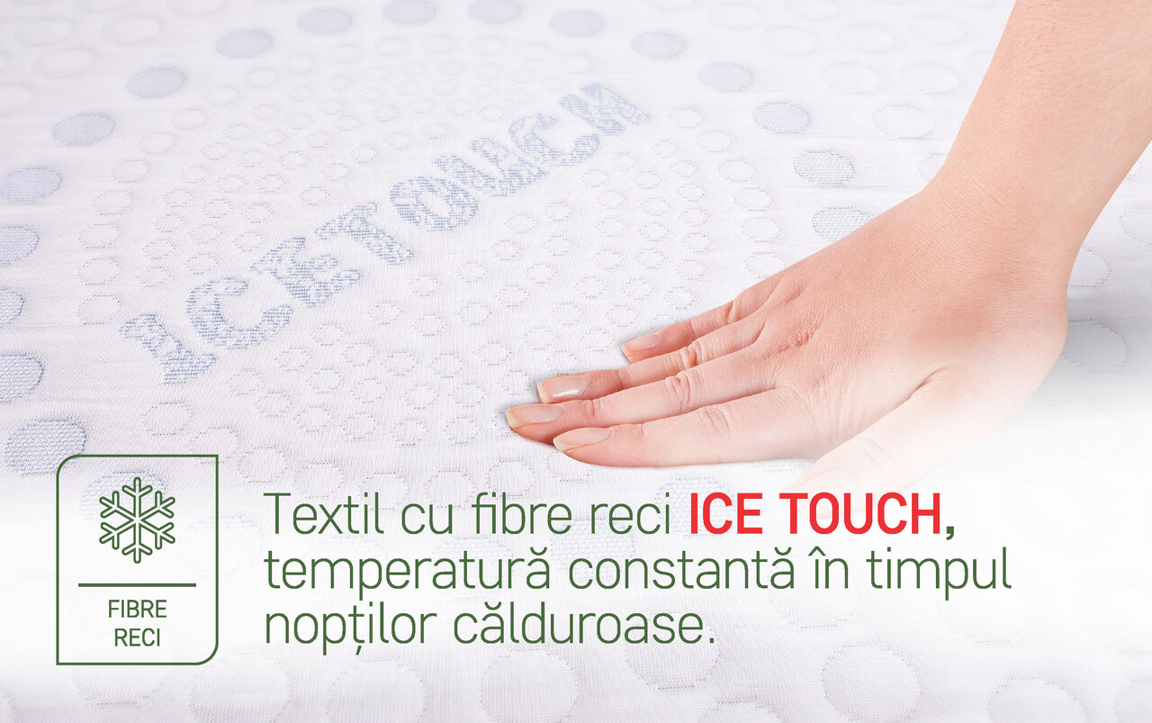 Topperul pentru saltea Ice Touch cu spuma memory este o alegere excelenta pentru imbunatatirea confortului unei saltele sau canapele. Datorita particulelor reci incorporate in spuma, acesta contribuie la mentinerea unei temperaturi optime pe parcursul noptii, oferind o senzatie de racoare.