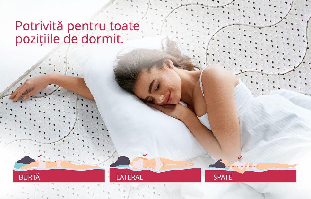 Indicata pentru toate pozitiile de dormit: pe spate, pe lateral si pe stomac