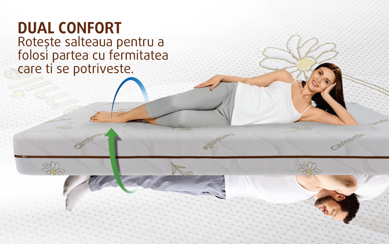 Salteaua poate fi utilizata atat pe partea cu stratul Soft Confort™, cat si pe partea cealalta daca se doreste o fermitatea mai mare.